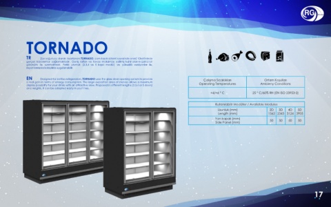EN Designed for bottles refrigeration, TORNADO uses the glass door opening system to provide Çalışma Sıcaklıkları Ortam Koşulları